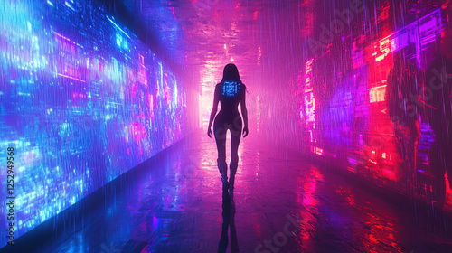 futuristic, city landscape, neon, blues, red, rain, billboard, glitch, holographic, visor, digital, dream, night, high technology, science, fiction, cinematic, technology, marketing, gaming, entertainment, conceptual, abstract, design, moody, vibrant, metropolis, city, skyscraper, corporate, branding, modern, edgy, cyber, advertising, digital artwork, advanced