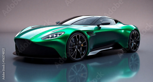 A futuristic cyberpunk-style concept car with sleek curves, emerald green metallic finish, ultra-detailed headlights, and cinematic lighting. Created by AI.