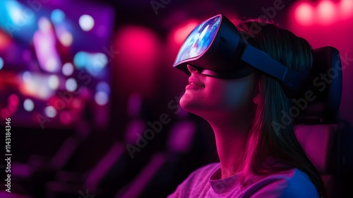 A futuristic hotels immersive theater offering holographic storytelling experiences.