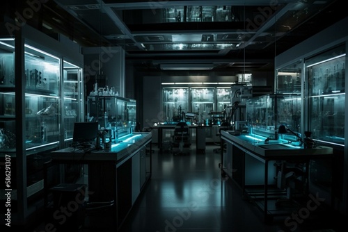A futuristic laboratory with glowing test tubes and advanced equipment Generative AI