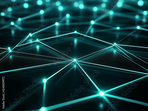 futuristic, network, teal, glowing, node, connection, technology, science fiction, light, line, pattern, grid, abstract, digital, cyber, three-dimensional, wire, energy, sleek, virtual, innovation, datum, circuit, system, communication, bright, dark, design, electric, illuminated