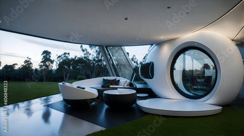 A futuristic smart home with automated devices and IoT integration. Generative AI