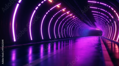 A futuristic tunnel illuminated with vibrant purple neon lights, creating a sense of mystery and wonder. The glowing lights symbolize innovation, technology, and the unknown.