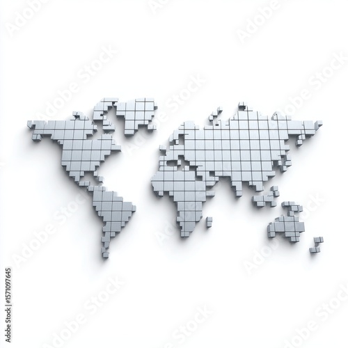 A futuristic world map showcasing a global network, representing interconnectedness and international relations using abstract block design elements