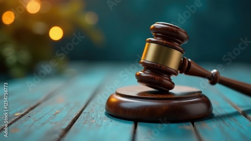 A Gavel Rests on a Wooden Sound Block, with a Blurred Festive Background