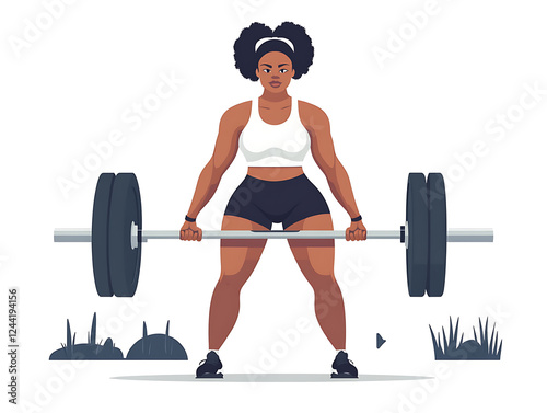 A girl doing workout lifting barbell illustration