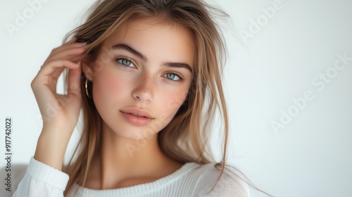 banner, girl, jewellery, indoor, bright, elegant, beauty, fashion, lighting, portrait, showcase, accessory, youth, style, coiffure, graceful, contemporary, natural, expression, eye contact, closeup, display, trendy, sophistication, charme, delicate, aesthetic, pose, warmth, casual attire, confidence, simplicity, modern, stylish, high-coloured, serene, glow, sparkle, radiant, allure, collection, detail, youthful, glamour, ambience, captivating