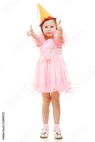 beautiful, beauty, birthday, caucasian, celebrate, celebration, children, childhood, cute, decoration, expression, face, female, fun, girl, happy, hat, joy, children, little, party, people, pink, pretty, studio, sweet, trumpet, white, yellow, young, youth, ok, good, gesture