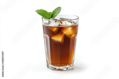 glasses, drink, mint, refreshment, leaf, ice, cube, beverage, white, liquid, tea, herbal, aromatic, cool, favor, ingredient, herb, green, still, life, stem, isolated, macro, studio, shot