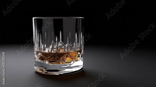 whiskey, glasses, alcohol, drink, beverage, liquid, spirit, scotch, bourbon, tumbler, bar, dark, refreshment, transparency, still life, single object, crystal, drinking, brown, alcoholic, elegant, amber, party, pub, celebration, pleasure, lifestyle, closeup, isolated, luxury, classic, old-fashioned, rich, delicious, cool, smooth, gold, shadow, black background, empty, table, closeup, background, nobody, cut glass