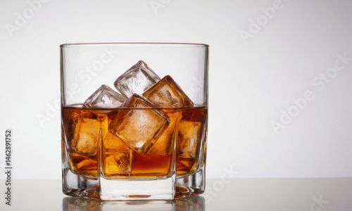 A glass of whiskey served with ice cubes on a table, great for a relaxing evening