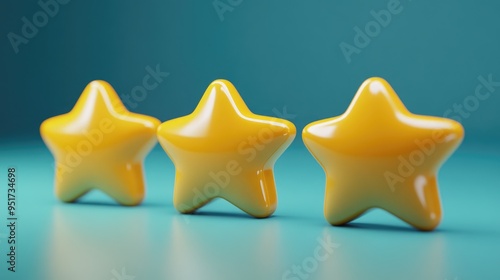 A gleaming 3D rendering of five glossy yellow stars, representing perfect quality and exceptional performance in ratings.