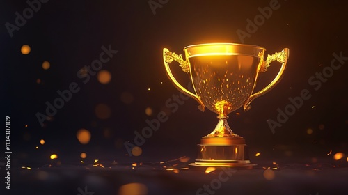 A gleaming golden trophy stands majestically, symbolizing achievement and success, surrounded by a warm glow.