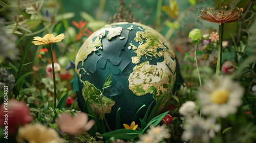 a globe in a flower garden