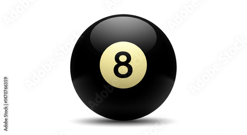 A glossy black eight ball with a cream colored circle and the number eight in the middle isolated