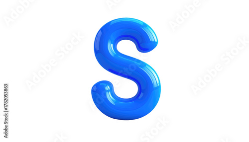 A glossy, blue, inflatable letter S against a black background, rendered with highlights and subtle refractions