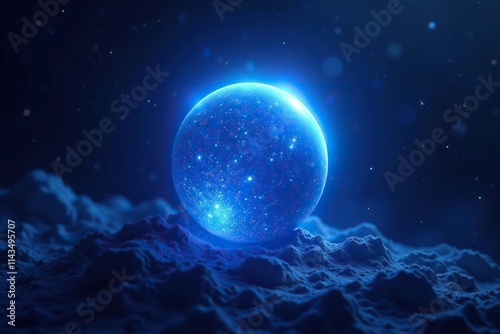 A glowing blue orb is suspended in space with an otherworldly aura, space, radiant, otherworldly