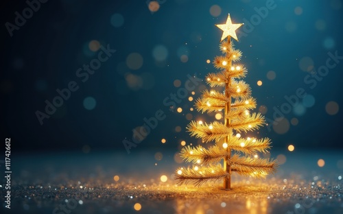 A glowing Christmas tree stands out against a background, surrounded by sparkling lights.