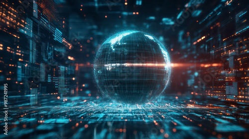 digital, globe, network, datum, technology, abstract, future, futuristic, science, communication, cyberspace, connection, global, earth, earth, line, grid, light, glowing, neon, blue, orange, background, design, illustration, concept, three-dimensional, render, graphic, pattern, texture, modern, contemporary, innovation, virtual, reality, space, simulation, visualisation, artificial, intelligence, machine, learning, big, cloud, speed, signal