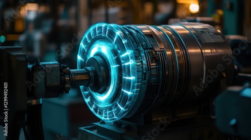 A glowing industrial generator producing electricity waves on a futuristic dark cyan background