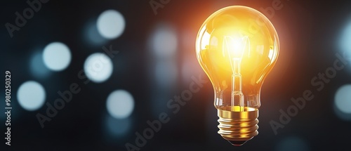 A glowing light bulb illuminating a dark background, symbolizing ideas, creativity, and innovation in a modern environment.