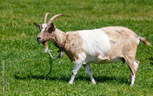 grass, mammal, goat, animal, green, nature, meadow, field, summer, rural, farming, grazing, cute, pasture, farm animal, domestic, fur, young, horn, agriculture, country, milk, spring, white, countryside, looking, cattle, funny, head, portrait, brown, hair, village, landscape, eating, background, food, pet, standing