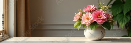 A golden frame surrounds a small marble vase with fresh flowers , Golden Frame, Elegant Decor