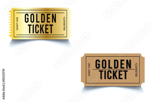A golden ticket with scalloped edges has a vintage design. Golden ticket.