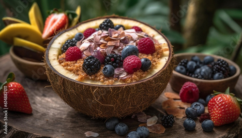 A gourmet berry bowl with granola, yogurt, and organic fruit generated by AI