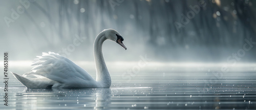 bird, nature, water, aquatic, elegance, floating, graceful, horizontal, no people, peaceful, photo, serenity, swimming, wing, ai, color image, monochromatic, still, surface, body, illustration, cygnet, animal, animal themes, beauty, lake, outdoors, day, white color, aethereal, cygnet, generative, mute swan, water bird