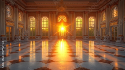 hall, sunset, architecture, light, elegance, design, symmetry, window, luxury, interior, space, warmth, beauty, ambience, marble, colours, decor, grandeur, artistry, scenery, atmosphere, classic, opulence, heritage, art, perspective, calmness, charme, history, culture, flooring, structure, radiance, view, landscape, serenity, detail, craftsmanship, visual, nature, shadow, brightness, scene, environment, inspiration, opulent
