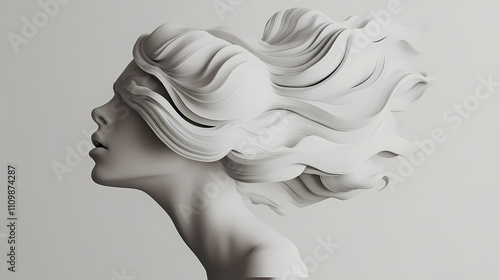 sculptural, hair, design, digital, pixel, minimalist, neutral, background, illustration