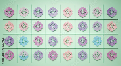 flower, paper, craft, hand-made, purple, pink, blue, light, green, background, pattern, decoration, floral, design, art, creative, detail, beautiful, arrangement, colours, grid, geometric, texture, craftsmanship, modern, minimalist, clean, graphic