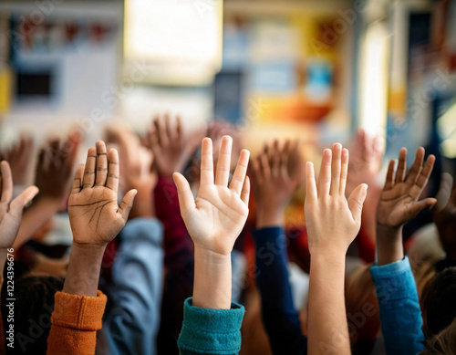 group, children, raising, hand, air, wearing, blue, person, shirt, education, teamwork, school, classroom, team, together, class, student, diverse, oneness, arm, togetherness, blackboard, human, young, friendship, ethnicity, participation, connection, variation, friends, colourful, voting, volunteer, support, up, caucasian, study, corporate