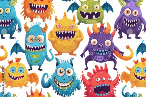 A group of colorful cartoon characters with large eyes and expressive features, perfect for illustrations or animations