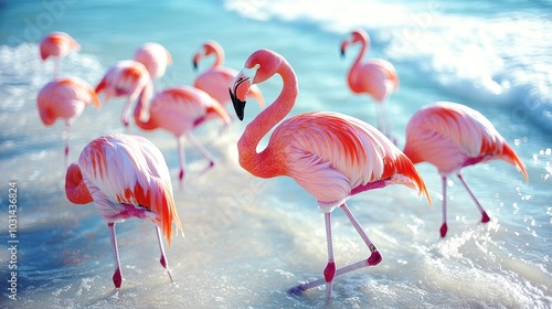 flamingo, bird, water, beach, nature, wildlife, pink, shore, ocean, habitat, tropical, marin, environment, scenery, fauna, flock, elegance, beauty, animal, shore bird, coastal, ecosystem, summer, sun, landscape, calmness, movement, colourful, feather, leg, beak, social, group, wetland, graceful, vibrant, aquatic, serenity