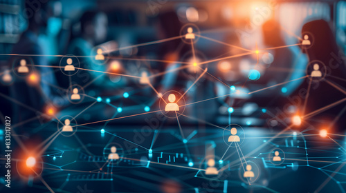 A group of people are holding hands in a circle, with a computer monitor in the background. Concept of unity and collaboration, as the people are working together towards a common goal