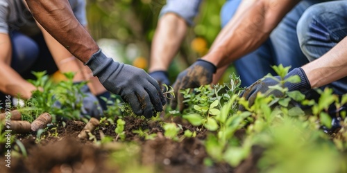 A group of people are planting a garden