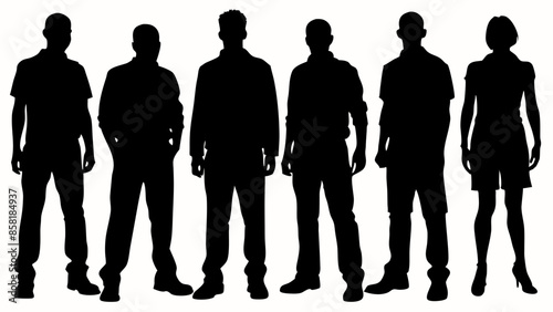person, vector, man, illustration, silhouette, standing, adult, group, team, male, young, human, business, friendship, outline, black, girl, female, woman, boy, crowd, vertical, front view, businessman, clip art, occupation, friends, background, pair, concept, professional, couple, work, cut-out, casual clothes, jacket, cap, white, children, full-length, white background, backview, half face, adults only, relaxation, job, computer graphic, lifestyle