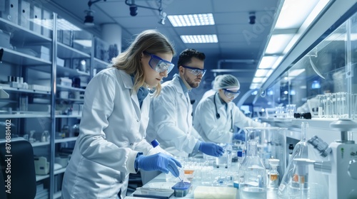 A group of researchers in a lab working diligently on medical advancements
