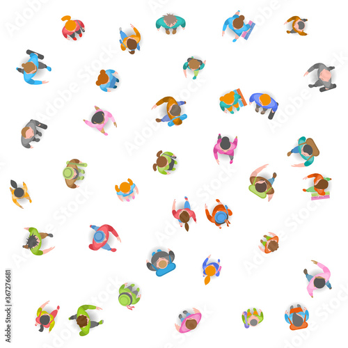 A group of social people. Top view. Crowding people. View from above.