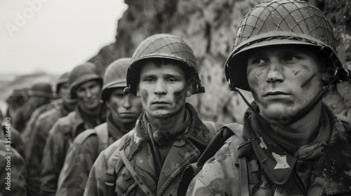 soldier, world war ii, combat, gear, war, military, history, conflict, battle, troop, infantry, army, man, group, face, portrait, black-and-white, archive, photo