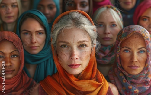 woman, head, covering, headscarf, right, equality, diversity, empowerment, strength, oneness, solidarity, sisterhood, female, femininity, sex, justice, respect, inclusion, acceptance, human, social, feminism, powerful, confident, courage, voice, racked, together, strong, group, look, camera, portrait, art, colourful, cultural, tradition, faith, religion, culture, expression, identity, global, community, society, movement, campaign