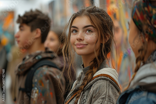 A group of young artists hosting an art exhibition, showcasing their creative works.