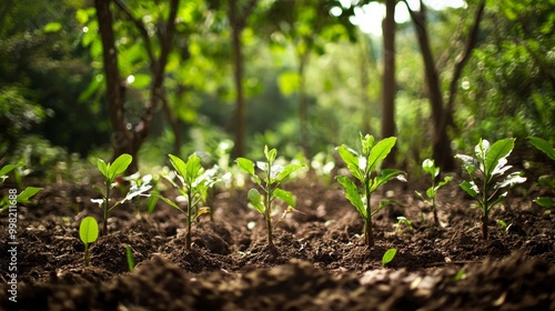 nature, agriculture, green, growth, plant, spring, gardening, germ bud, leaf, grow, dirtied, germinating, young, fresh, small, life, ground, new, seed, tree, farm, concept, background, dirt, environmental, vegetable, ecology, beginning, organic, cultivate, botany, sapling, season, land, closeup, forest, root, sunlight, light, environment, water, summer, plantation, food, flora, earth, baby, ai