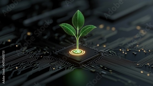 technology, circuit, digital, electronic, board, computer, chips, processor, plant, leaf, leaf, green, germinating, future, growth, connection, power, innovation, environment, ecology, sustainability, energy, renewable, artificial, intelligence, system, design, concept, graphic, structure, development, detail, image, modern, illustration, closeup, abstract, dark, background, bright, light, illuminated, glow, datum, integrated, processing, source, element
