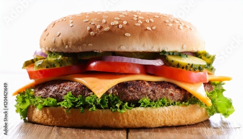 hamburger, burger, food, cheese, beef, cheeseburger, bread, sandwich, bun, meat, isolated, fast, lettuce, tomatoes, meal, white, lunch, fat, sesame, snack, onion, dinner, unhealthy, fast food, tasty
