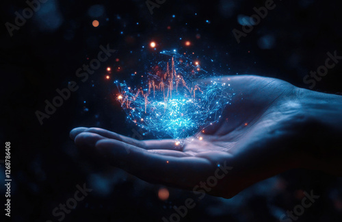 A Hand Holding a Glowing Network of Data Points Representing Digital Transformation and Innovation