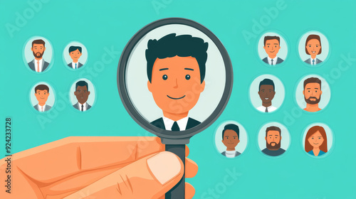 employee, business, hr, job, human, hiring, search, recruitment, choice, person, career, flat, staff, employer, illustration, research, company, choose, candidate, manager, resume, select, team, hunter, magnifying, head, work, looking, headhunter, concept, glasses, occupation, resource, professional, applicant, personnel, finding, hand, businessman, specialist, contract, man, icon, cv, group, men at work, male, pecking, solution