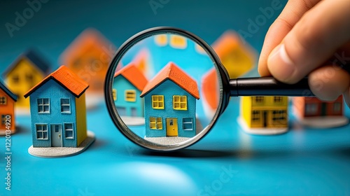 hand, holding, magnifying, glasses, colourful, miniature, house, real, estate, inspection, property, search, attention, detail, when, exploring, potential, investment, opportunity, house, home, building, three-dimensional, sale, real estate, business, architecture, icon, construction, roof, residential, housing, buy, apartment, loan, illustration, rent, red, symbol, signs